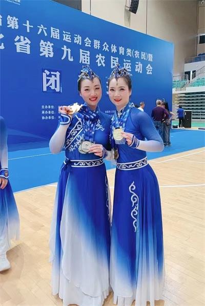 熱烈祝賀謝芳同志(照片中第一排從左到右第三位)在湖北省第十六屆運(yùn)動(dòng)會(huì)群眾類(農(nóng)民)健身操團(tuán)體比賽中獲得一枚金牌,四枚銀牌,團(tuán)體總分第一的優(yōu)異成績。